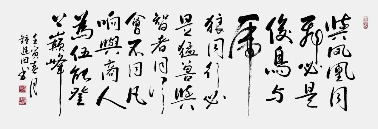 钟进田老师作品曾在《国家墨宝》中国人美出版社《大师列传》黄永玉题,《中国书画大家》孙晓云题,北京大兴国际机场、地铁线、人民代表报、人民日报形象展示等等!