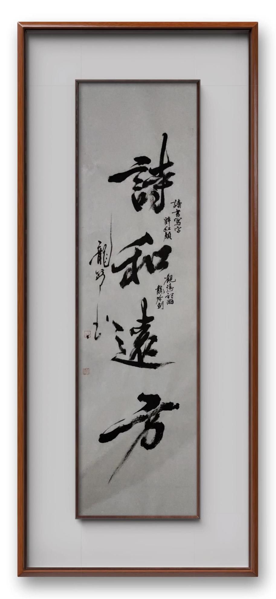 高低有别,丰姿多趣。其书法亦常有一点斜附,如螳螂抱枝的趣味横生。结体有活性,字字耐于品,这就让他的书法自有格局,超凡脱俗。其书法法度严谨于共性,形态精彩于个性,足以说明李贵龙是书法文化传承与创新的双料贤能!