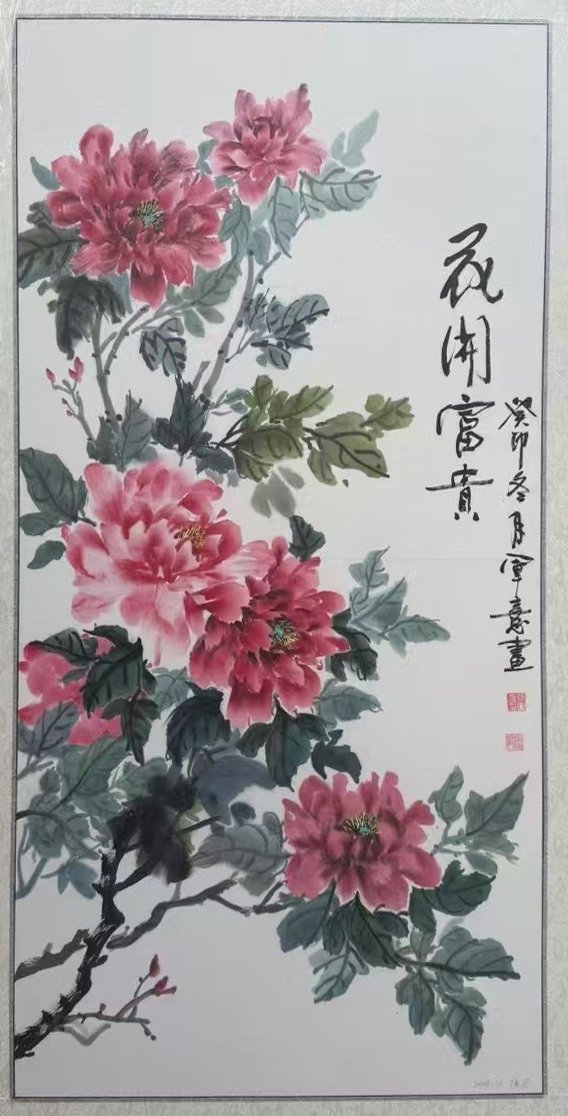 徐军喜自幼酷爱美术,凭借深厚的艺术造诣和敏锐的艺术感知力,在国画领域独树一帜。画风多样、用色大胆,尤以大写意、小写意花鸟、人物、山水画见长,作品生动灵活,造型能力极强。早期作品带有浓厚的情节性,笔墨清新洒脱,富有极强的表现力。