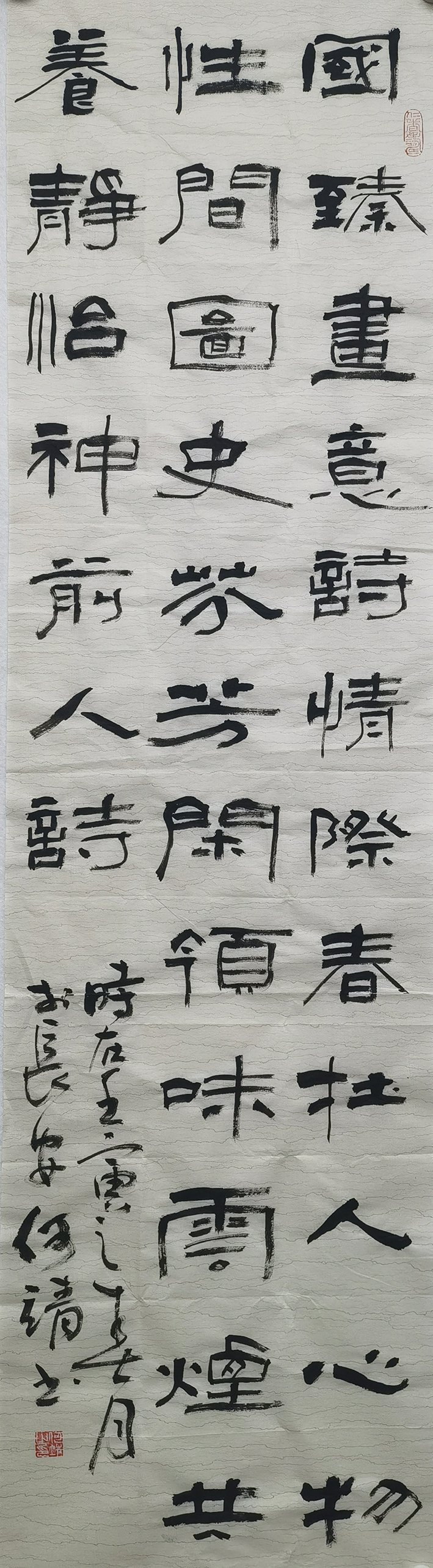 何靖,男,汉族,研究生,政工师,毕业于陕西师范大学,号青莲居士,别号荷池斋,国家一级美术师。 陕西省书法家协会会员 中国楷书艺术研究院研究员 中国新闻出版书法家协会会员 西安碑林书法家协会会员 西安中国书法院楷书专业委员会委员 陕西省书画艺术研究院宝鸡分院研究员 中国楹联学会会员 中华诗词学会会员 陕西省诗词学会会员 自小酷爱艺术,对书法情有独钟,在大学期间书耕不辍,常常留恋于西安碑林临摹碑文,自临其书法之形,自享其书法之美,自悟其书法之道。